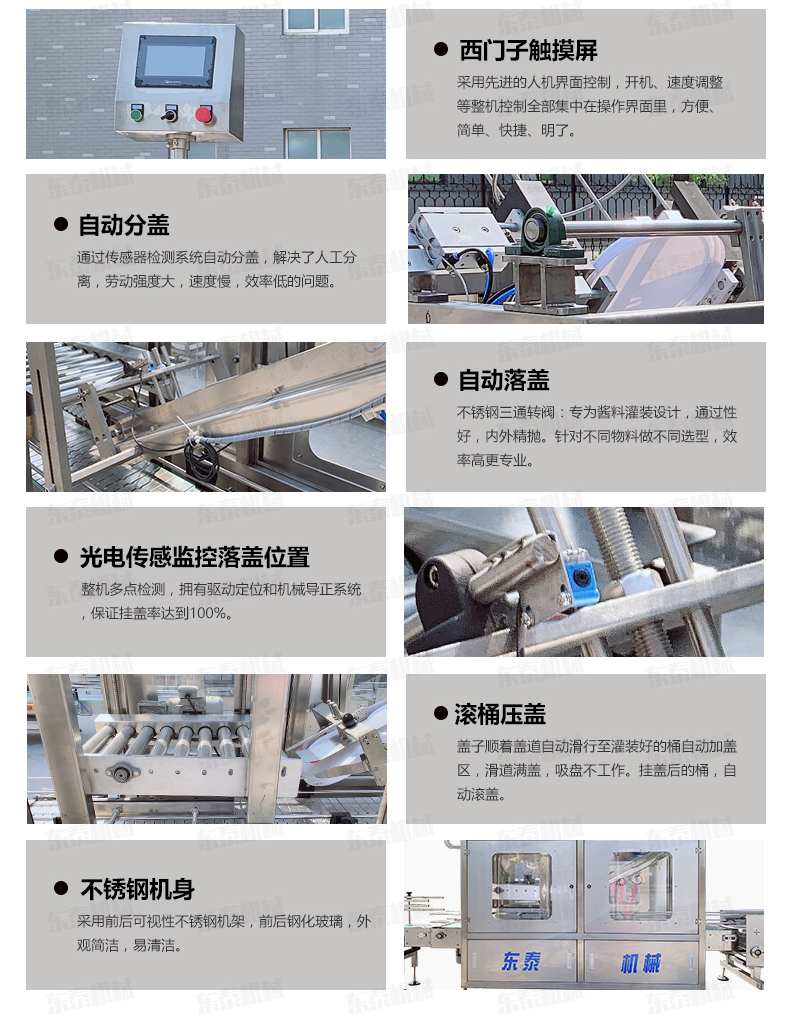 1.“自動(dòng)吸蓋”自動(dòng)控制系統(tǒng):整機(jī)多點(diǎn)檢測,通過光電傳感監(jiān)控落蓋位置
