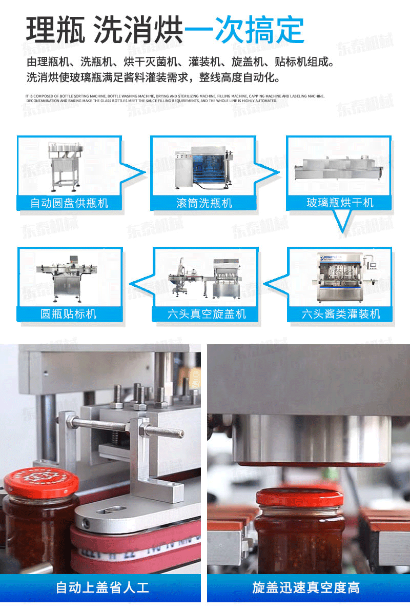 番茄醬灌裝旋蓋生產(chǎn)設(shè)備組成: