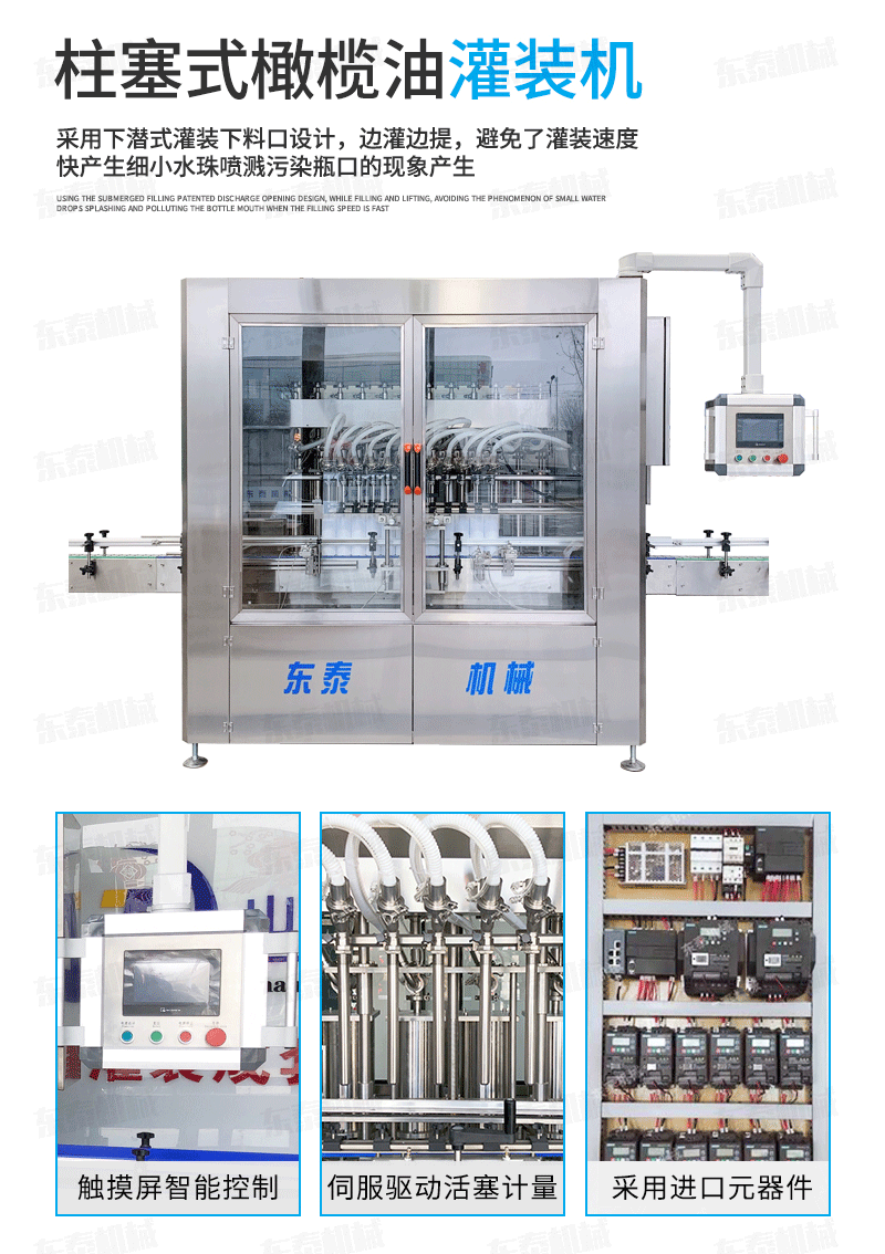 3.采用下潛式灌裝,在桶口以內約5-8mm處進行灌裝,避免了灌裝速度快產生細小油珠噴濺污染瓶口的現象產生。配合多段式快慢速灌裝,可以保障高速灌裝時全速灌裝,又可有效解決氣壓過高快速灌裝時泡沫溢瓶現象