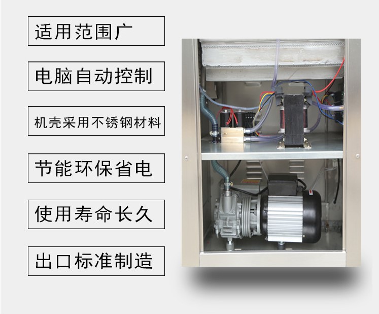 架體采用國(guó)際標(biāo)準(zhǔn)食品用304不銹鋼板,強(qiáng)度高,不易破損,它獨(dú)特的傾斜臺(tái)面設(shè)計(jì),可以保證產(chǎn)品內(nèi)的水份不流失,從而使產(chǎn)品的含水真空包裝更易操作。
